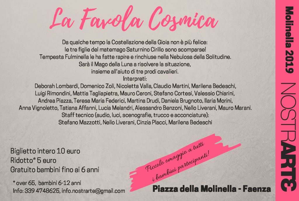 Anche questa estate 2019 la Compagnia delle Feste torna insieme a NostrArte per proporre una favola per tutti i bimbi.